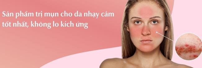 - - Ngoài ra, bạn cũng cần tránh lựa chọn các sản phẩm trị mụn cho da nhạy cảm có chứa những thành phần dễ gây kích ứng như cồn, Paraben, Hydroquinone, hương liệu, Oxybenzone,...Chỉ cần một lượng nhỏ những hoạt chất này cũng đủ để khiến làn da nhạy cảm xuất hiện những mảng đỏ gây cảm giác khó chịu cho bạn.